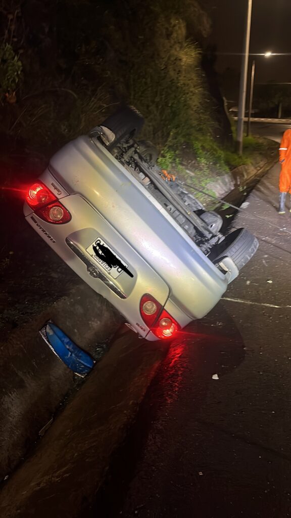 La carretera estaba mojada y, aunque no iba a más de 60 km/h , al tomar una curva el auto comenzó a derrapar. Intenté controlarlo, pero fue imposible: terminé volcando y quedando de cabeza dentro del vehículo.